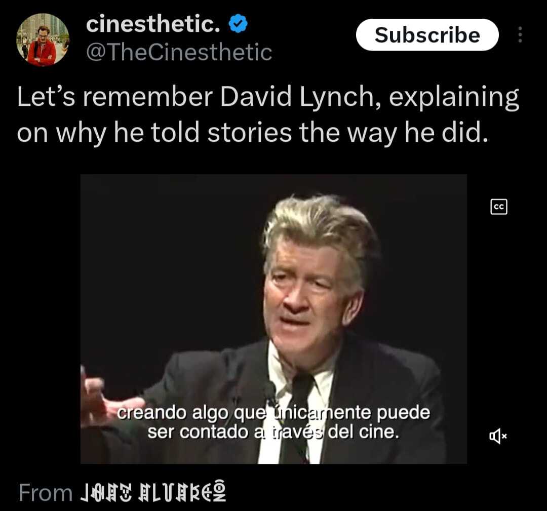 There's this fine balance between chaos and order that we must strike in our creative endeavors. This ensures that there is enough consistency and follow-through to build something of value, but also with enough space for life to insert it's unexpected wisdom. This is where we use our intuition to connect the dots to a personal understanding of something. Last week, we lost a legendary human always in pursuit of the most beautiful creative expression, the film director/writer, David Lynch. In this video, he talks about the use of intuition to unravel life's abstractions, and that which is hard to explain ↴